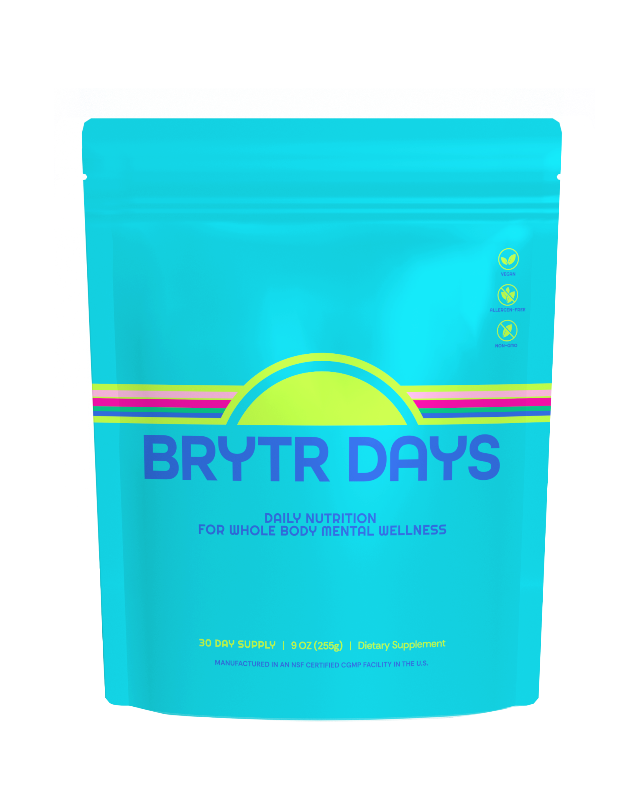 BRYTR DAYS is a daily scoop with 17 clinically-backed nutrients your brain and body need for optimal mental wellness. It won’t replace sleep, exercise, or an ideal diet (and we’re not pretending it will). But it is one thing you can control — a daily step you can take and know you’ve done something good for yourself, no matter what else your day brings.