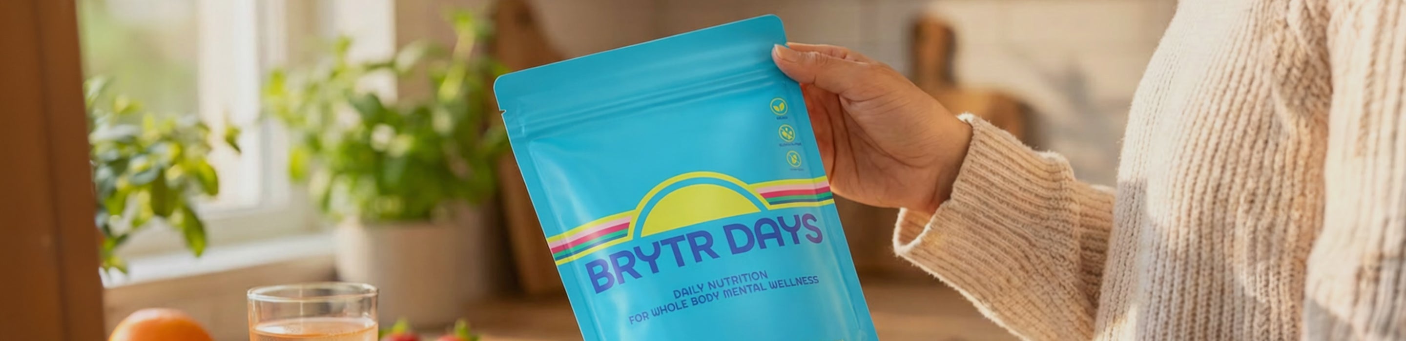 A daily nutritional drink formulated with active ingredients naturally found in whole foods and shown to support mental wellness. BRYTR DAYS feeds your body to fuel your brain through deep cellular nourishment™